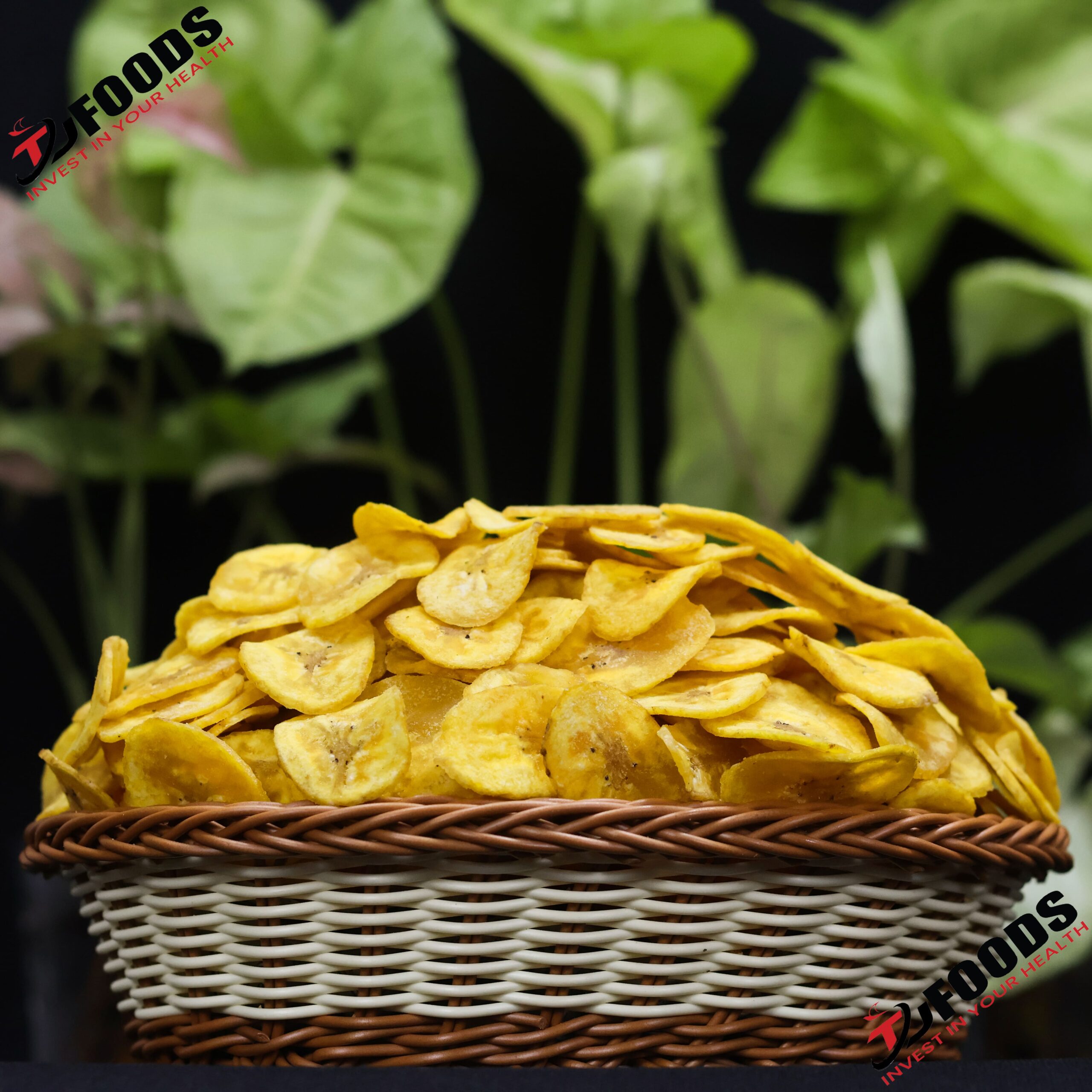 “Our Banana Chips are made from carefully selected raw bananas, thinly sliced and perfectly fried to golden crispiness. Lightly salted to enhance the natural flavor, each bite brings you the authentic taste of Kerala’s traditional snack. Crunchy, delicious, and prepared without shortcuts, these chips are the perfect companion for tea time, family gatherings, or just anytime munching.”
